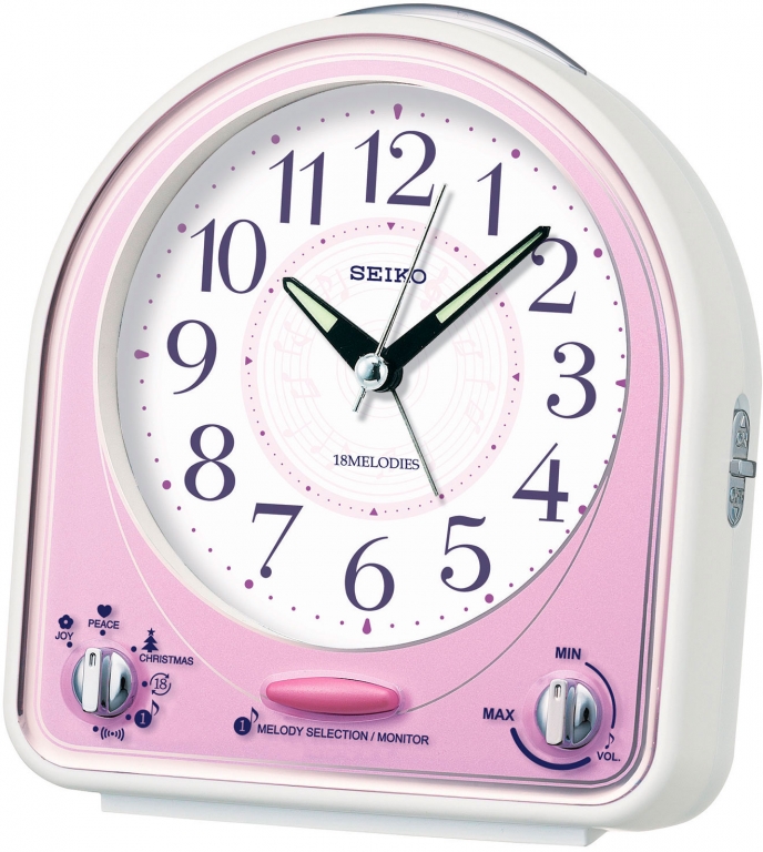 Настольные часы-будильник с функцией отложенного сигнала. Кварцевый механизм. Корпус выполнен из пластика. Люминесцентные стрелки и метки.