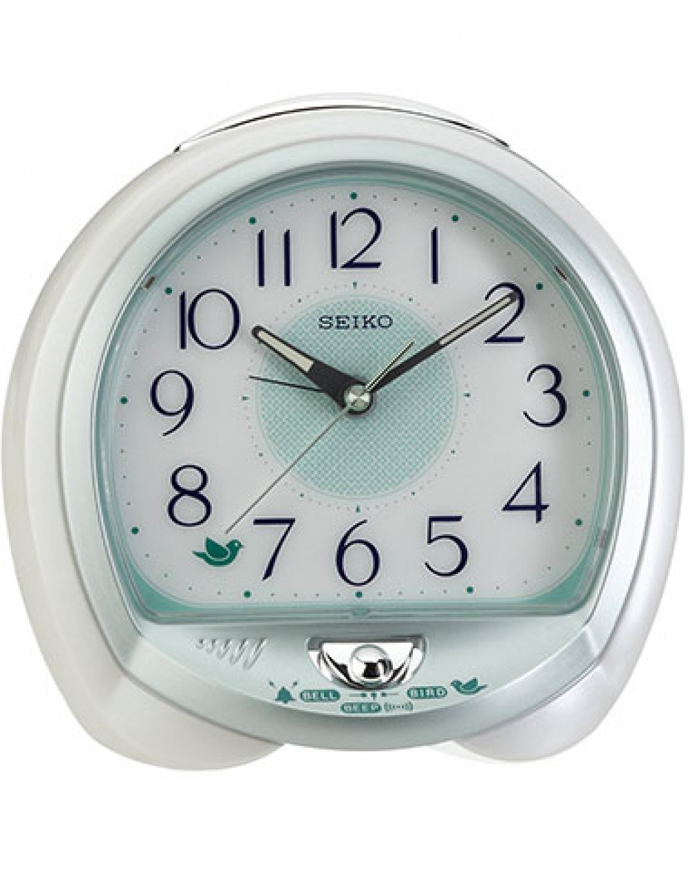 Кварцевый будильник, корпус сделан из пластика, подсветка стрелок, маркеров часа, функция повторения сигнала, звуки пения птиц, требуются три батарейки АА (в комплекте). Три варианта сигнала будильника - звонок(колокольчик), обычный сигнал и пение птиц. Sweep Second - плавное движение секундной стрелки обеспечивает бесшумный ход. Повтор сигнала будильника - после срабатывания сигнал будильника через несколько минут повторяется если данная функция полностью не отключена. Светодиодная подсветка - при нажатии на кнопку освещается весь циферблат. На стрелках нанесен светонакопитель - в темноте светится.