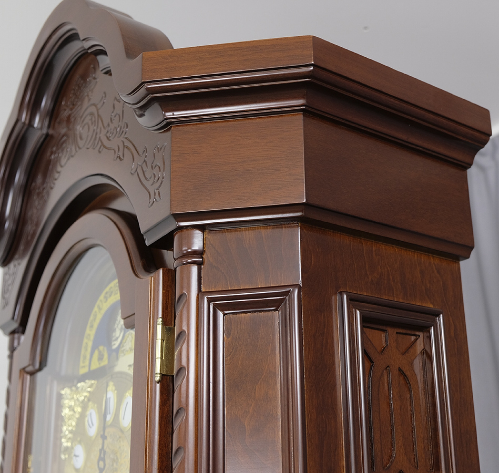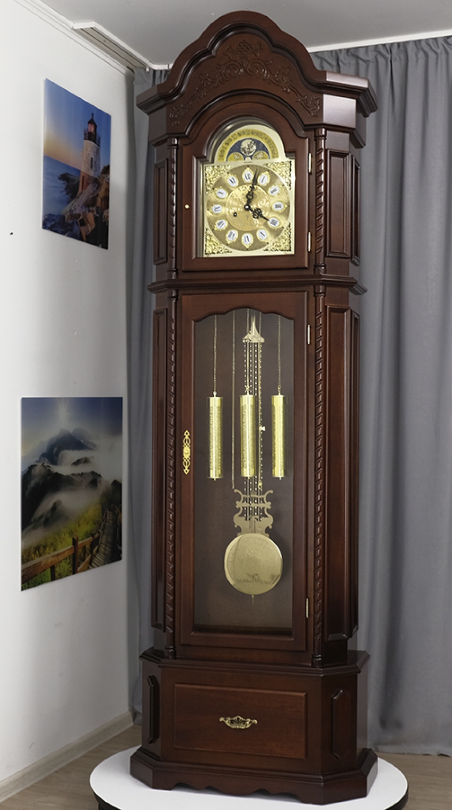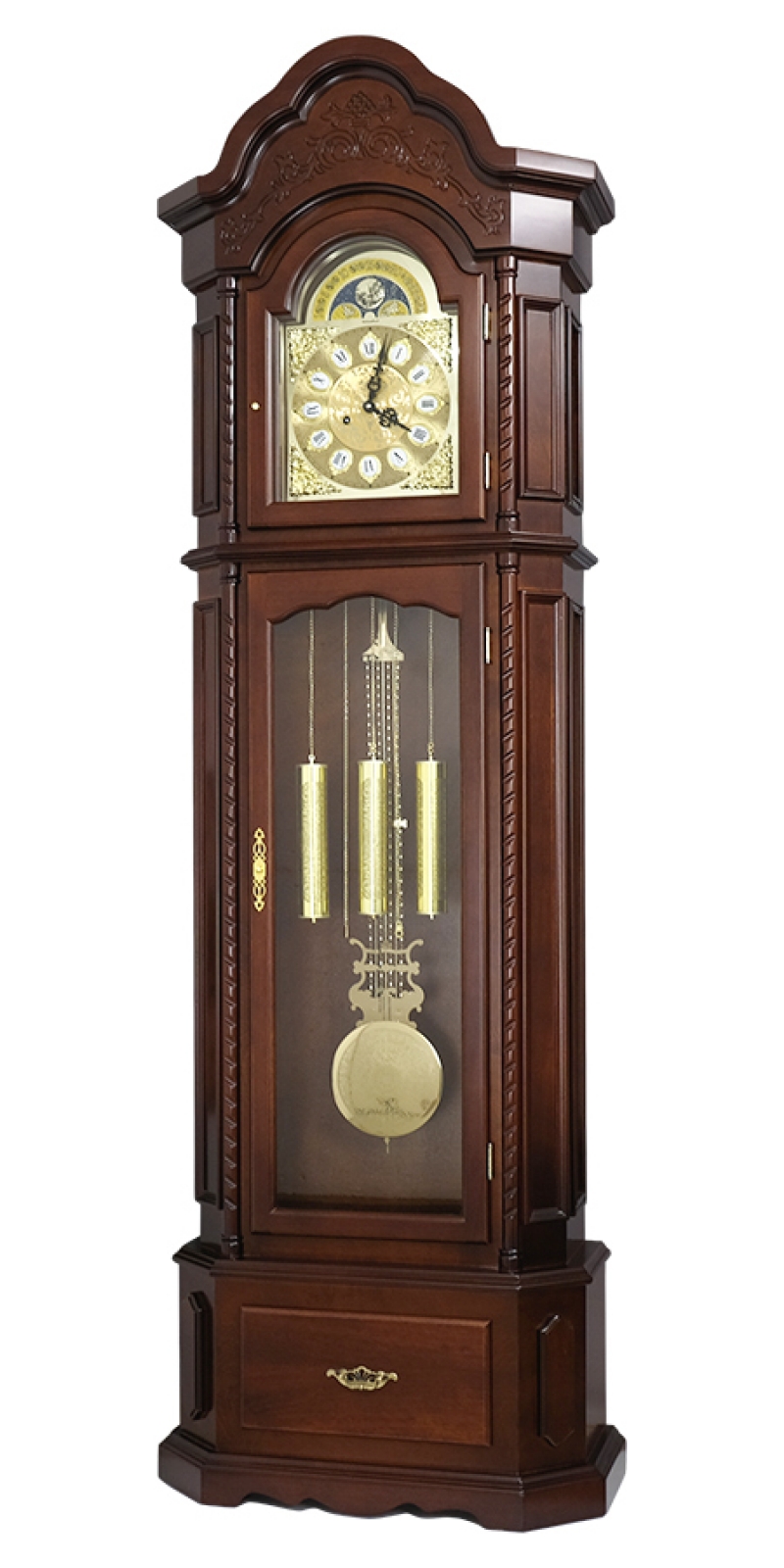 Напольные часы в корпусе из массива дерева и МДФ, покрытого шпоном.