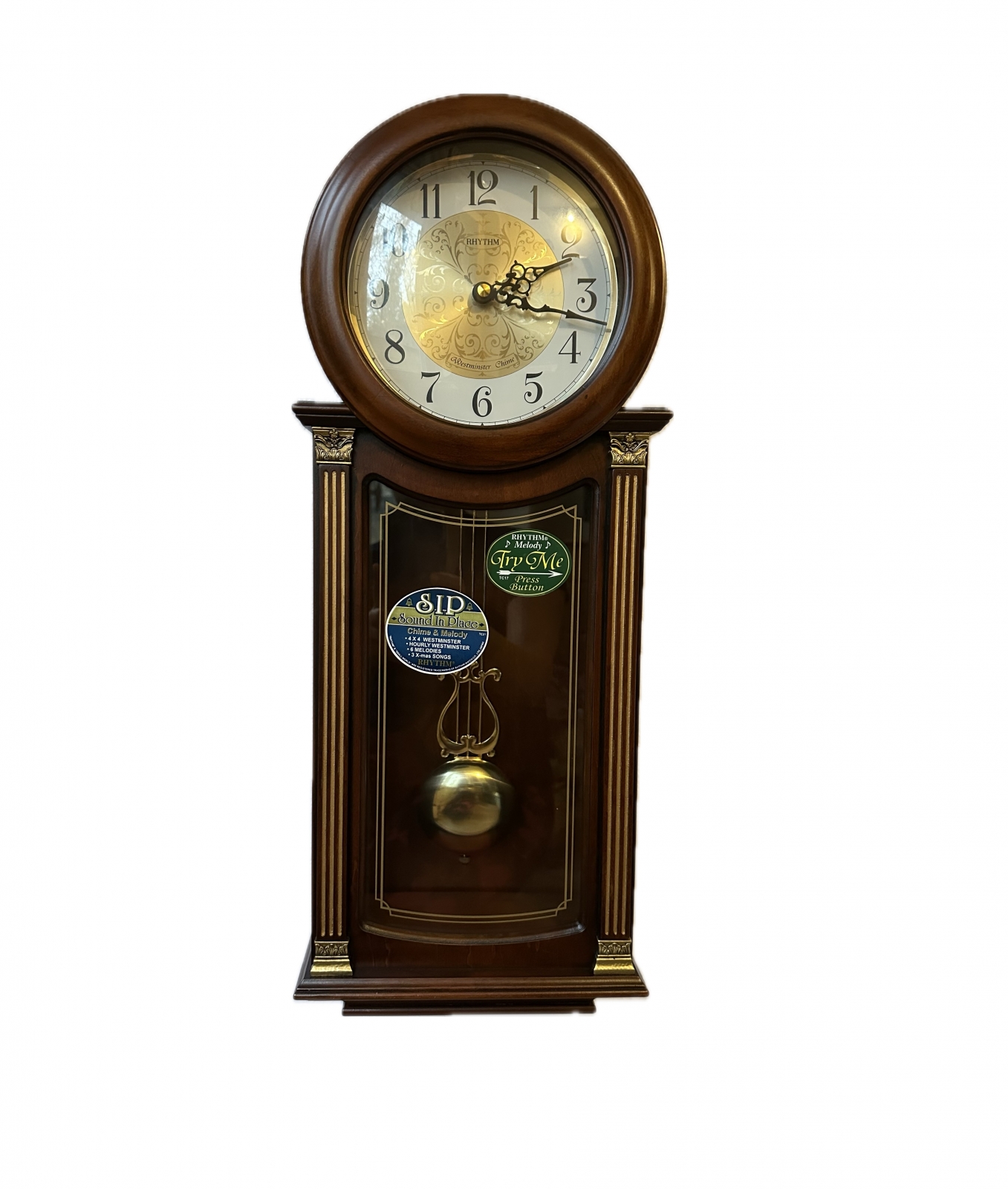 Корпус выполнен из дерева, тонирован в цвет Орех. Качественный японский механизм с запатентованной разработкой воспроизведения звука компании Rhythm «Sound In Place».