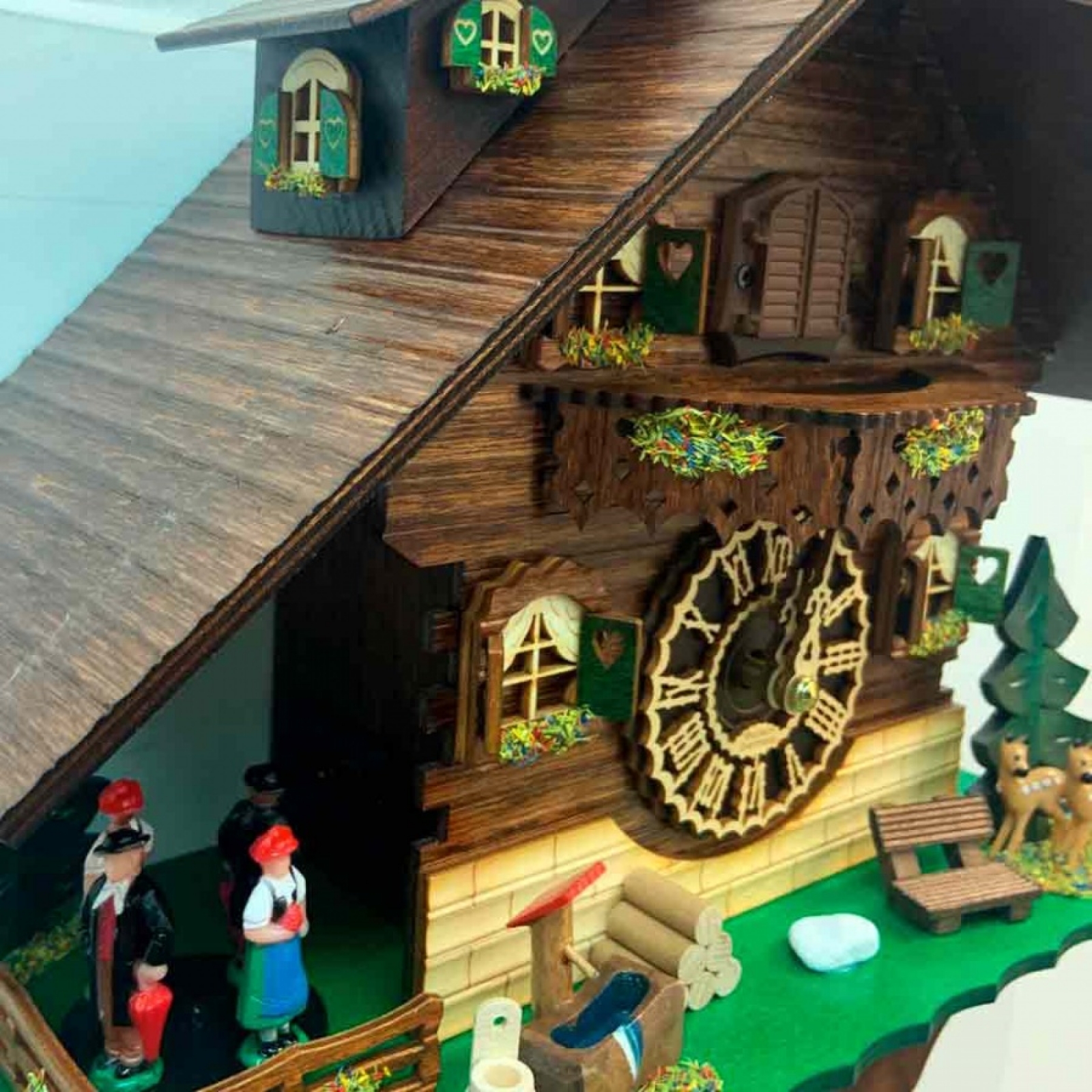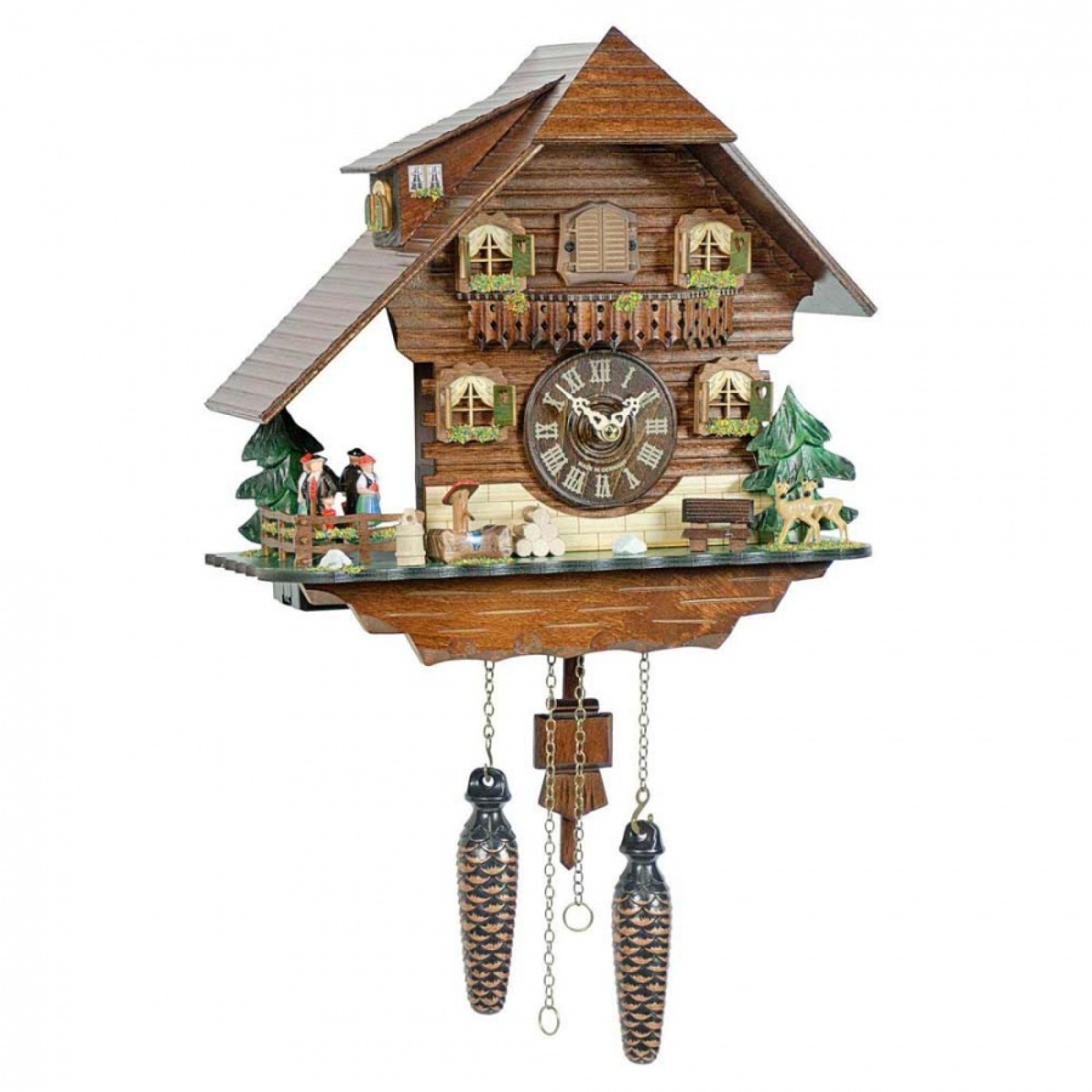 Кварцевые настенные часы с кукушкой, движущимися фигурками и 12-ю мелодиями.