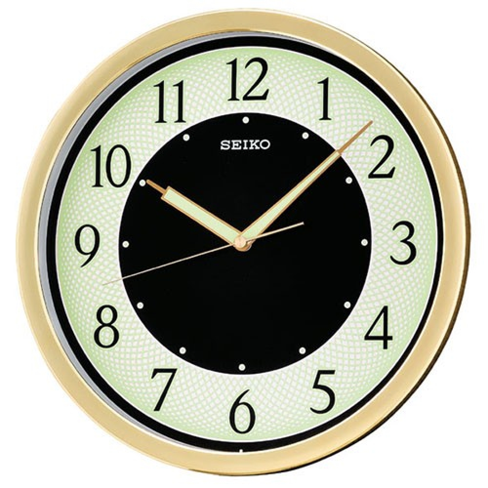 Настенные кварцевые часы брендовой марки Seiko. Современные настенные часы в круглом корпусе. Корпус изготовлен из нетоксичного пластика. Sweep Second - бесшумное и плавное движение секундной стрелки. Одна батарейка АА (в комплекте).