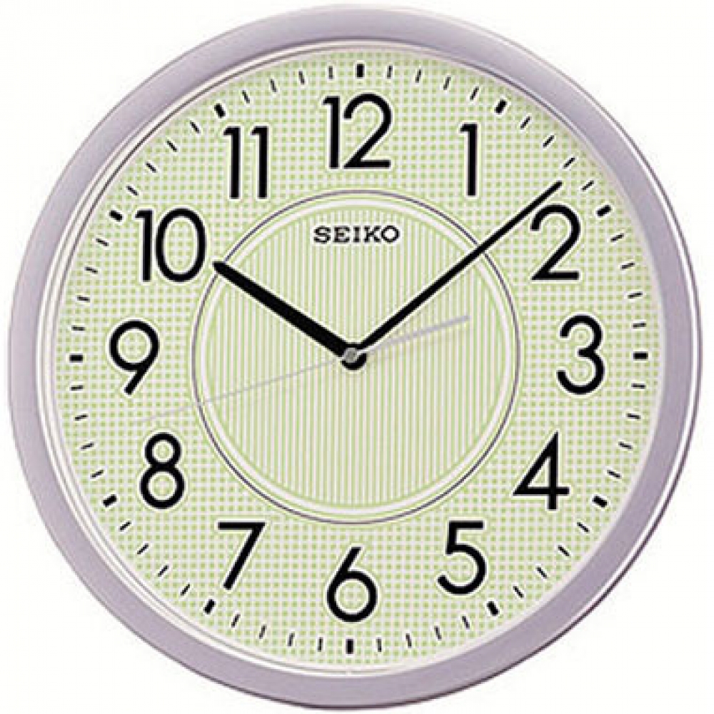 Настенные кварцевые часы брендовой марки Seiko. Современные настенные часы в круглом корпусе. Корпус изготовлен из нетоксичного пластика. Sweep Second - бесшумное и плавное движение секундной стрелки. Люминесцентный циферблат и стрелки. Одна батарейка АА (в комплекте).