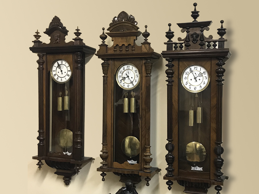 Роскошные интерьерные напольные, настенные, каминные часы 19 века с надежными механизмами от известных производителей Gustav Becker, Lenzkirch, Frederick Mauthe, Schlenker&Kienzle, Carl Werner, Junghans, Philipp Haas, Japy Freres, Павелъ Буре, Генри Мозер, Вильям Габю и др., отреставрированные нашими мастерами.